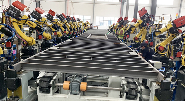 特種車業務涵蓋自卸車、骨架車、倉欄車、側翻車、廂式車、冷藏車、攪拌車的車架、廂板的焊接。新松公司根據特種車行業多品種、小批量、結構相似的特點,制定了柔性、高效、智能的解決的方案。采用信息化技術實現生產數據的管理,采用AGV實現多品種產品的地面安全周轉,采用離線編程和參數化編程及激光跟蹤技術實現產品的高效焊接。