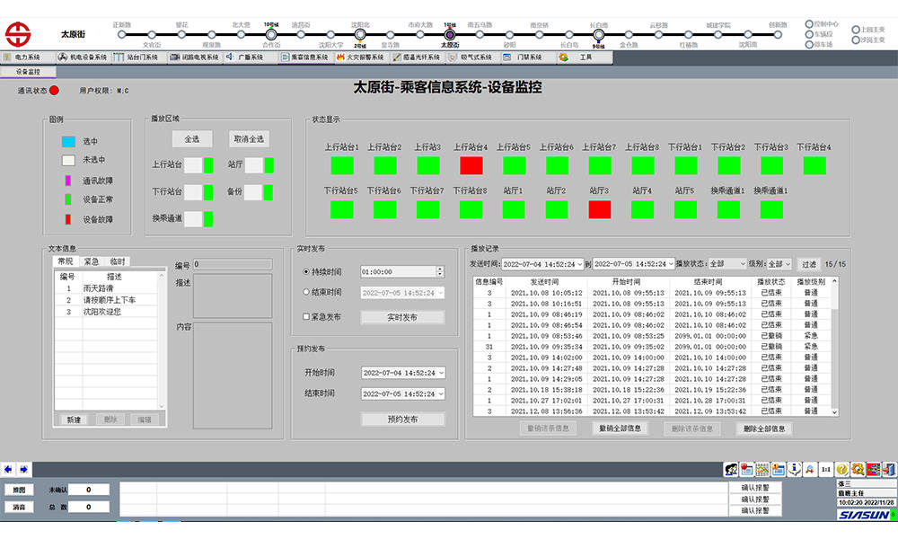 新松地鐵綜合監(jiān)控ISCS系統(tǒng)項目集成整合PSCADA、BAS、FAS、CCTV、ATS等多個專業(yè)系統(tǒng),實現(xiàn)多源異構(gòu)數(shù)據(jù)融合,將多專業(yè)信息在綜合監(jiān)控平臺集中展示,為地鐵工作人員提供安全、穩(wěn)定、便捷的維護和操作使用環(huán)境。
