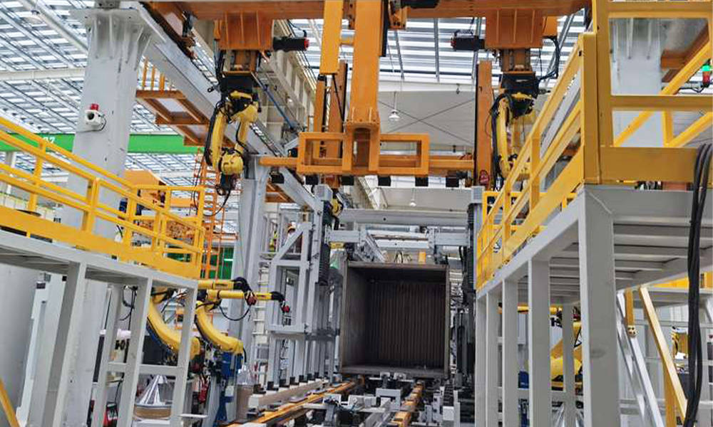 本項目為專用車行業首條廂式物流車廂體智能生產線。該項目為國內首創可實現采用3m至4.2m任意尺寸瓦楞及鋼平廂型車廂的混線生產,整線規劃有全自動物流設備,便于部件間工位轉運,比照傳統物流方式,生產效率提升顯著,此外整線弧焊機器人均配置激光傳感器,從而降低了對工件來料精度要求,可自動篩查異常焊縫,且修正產品誤差累計對焊接的影響,保證產品可穩定生產,整體產線作業效率較比照原有工藝提升200%,產線覆蓋廂式車廂全部6大部件制作,可批量復制,具有深遠的行業意義。