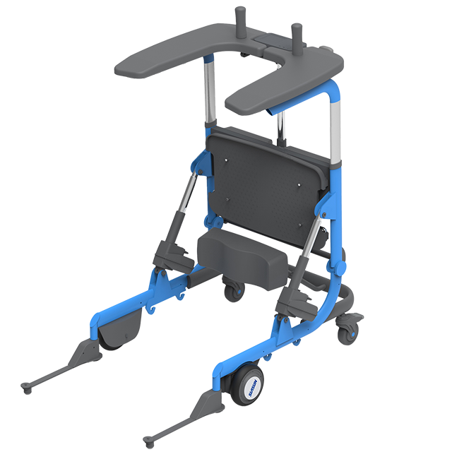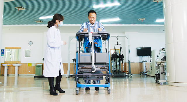 電動站立助行器集電動站立架、臺式助行器、移位機為一體。滿足使用者站立穩定性訓練、行走訓練、體位轉移的需求。支撐臺的角度及減重吊帶,隨著患者姿態靈活調整。提供行走助力和速度控制功能,誘發患者主動參與的同時,提供有效支撐和安全保障。適用于下肢運動障礙患者站立訓練與輔助、行走訓練與輔助、轉運訓練與輔助。本產品搭載新松智能安全算法與智能控制面板,多重保護機制,使用者能夠通過產品提供的支撐助力從而自主站立,完成坐站轉移。同時能夠輔助移動和運送,在復健鍛煉中,提供助力保護支持,使用者自主進行步行訓練,實現場景轉換。
