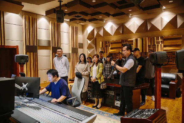 新松公司品牌與公共關(guān)系部部長哈恩晶女士帶隊(duì)參觀沈陽廣播電視臺(tái)杜比7.1.4全景聲錄音棚。